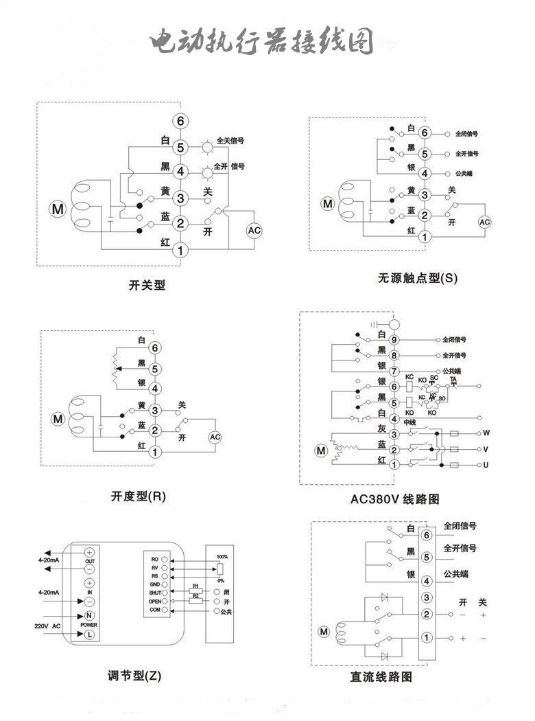 3、控制類型:開關(guān)型、無源觸點(diǎn)型、閥位信號反饋型,智能調(diào)節(jié)型